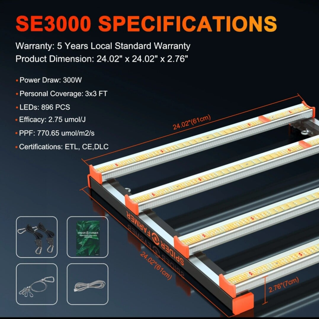 Spider Farmer SE3000 + 90x90x180cm Indoor Grow Tent Kits Combo
